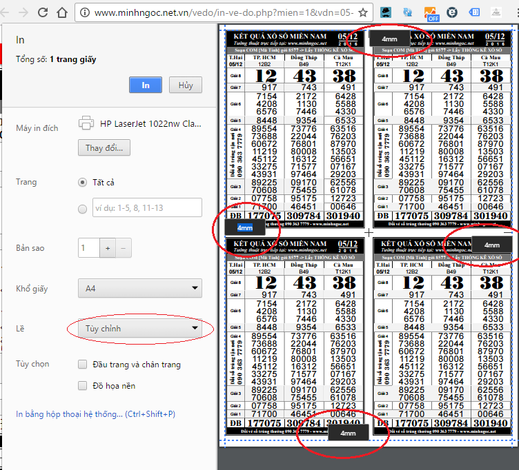 3/ Đối với một số thiết lập hệ điều hành, trình xử lý in có thể bản in bị bung trang hoặc quá nhỏ, các bạn canh lề Tùy chỉnh và thay đổi các thông số (như hình dưới) cho đến khi bản in phù hợp nhất: